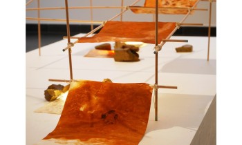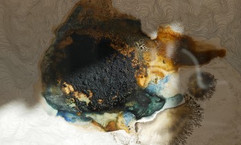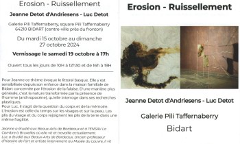 " Pour Jeanne ce thème évoque le littoral basque. Elle y est sensibilisée depuis son enfance dans la maison familiale de Bidart concernée par l'érosion de la falaise. D'une manière plus générale, c'est la nature transformée par la présence de l'homme (anthropocène), qu'elle interroge dans ses recherches plastiques. Pour Luc, il s'agit de la question du corps et de la mémoire. L'érosion est celle du temps sur les visages et sur la peau. Dans les dessins présentés, les plis de la terre rejoignent les plis du visage et du corps dans une même fragilité."