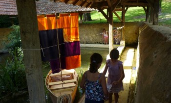 Au fur et à mesure de son parcours il se parera d’une grande voile colorée comportant un nouveau symbole par escale. Il se remplira aussi de papier fabriqué à la main, support des lettres que nous écrirons, et que nous adresserons à la rivière quand le moment sera venu. Il sera surtout un objet de curiosité, entre sculpture et personnage, encourageant le jeux et l’appropriation d’endroits quotidiens ou insolites choisis. La traversée finale du radeau sur la Save sera une célébration : nous suivrons son parcours à pied le long des berges, Une fois amarré, la traversée finie, nous nous rassemblerons une dernière fois pour fêter cette aventure et lirons certains des récits collectés, comme une offrande au fil de l’eau.