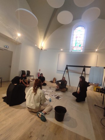 Les créations ont ensuite pris vie sous forme de « capes peintes », portées lors d’une déambulation musicale et visuelle, où sons et peintures se répondaient en direct. Une expérience insolite et inspirante, qu’iel·s ont abordée avec curiosité et enthousiasme ! 💛