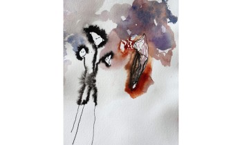 " Pour Jeanne ce thème évoque le littoral basque. Elle y est sensibilisée depuis son enfance dans la maison familiale de Bidart concernée par l'érosion de la falaise. D'une manière plus générale, c'est la nature transformée par la présence de l'homme (anthropocène), qu'elle interroge dans ses recherches plastiques. Pour Luc, il s'agit de la question du corps et de la mémoire. L'érosion est celle du temps sur les visages et sur la peau. Dans les dessins présentés, les plis de la terre rejoignent les plis du visage et du corps dans une même fragilité."