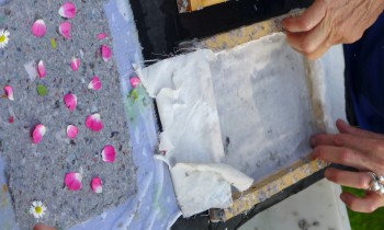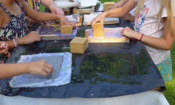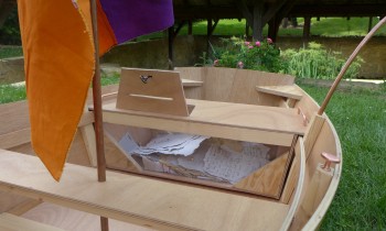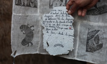 Au fur et à mesure de son parcours il se parera d’une grande voile colorée comportant un nouveau symbole par escale. Il se remplira aussi de papier fabriqué à la main, support des lettres que nous écrirons, et que nous adresserons à la rivière quand le moment sera venu. Il sera surtout un objet de curiosité, entre sculpture et personnage, encourageant le jeux et l’appropriation d’endroits quotidiens ou insolites choisis. La traversée finale du radeau sur la Save sera une célébration : nous suivrons son parcours à pied le long des berges, Une fois amarré, la traversée finie, nous nous rassemblerons une dernière fois pour fêter cette aventure et lirons certains des récits collectés, comme une offrande au fil de l’eau.