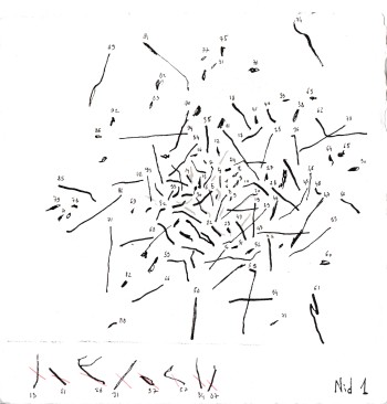 Plan détaillé du nid de la poule d’eau, dessin sur calque,